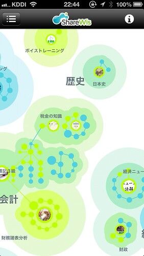 知識の地図 ShareWisっていうiPhoneアプリを使っています。 ShareWis(シェアウィズ)SHAREWIS INC教育無料 無料で学習できるアプリです。 マインドマップのようにスタート地点から分岐していくようになっていて、学習が進むほど、枝が広がっていく感じです…