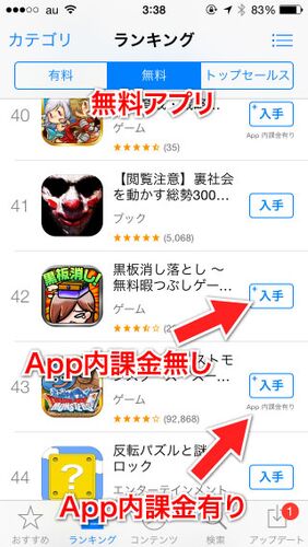 アプリ内課金の有無 みなさん、こんにちは! B-CHANです。 iPhone、iPadのApp Storeの表示が変わりましたよね。 有料アプリは以前と変わらず金額表示ですが、無料アプリは、「無料」から「入手」に変更になりました。 さらによく見ると、有料アプリにも無料…