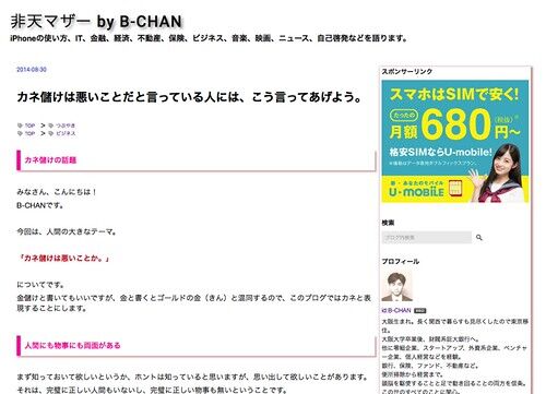 ブログでの収入 みなさん、こんにちは! B-CHANです。 先日、こんな記事を書きました。 ブログ収入で生活費をまかなう話 - 非天マザー by B-CHANwww.b-chan.jp まあ1日で1万PVに届くようなブログは、たぶん全国の数多くのブログの中でも上位0.1%くらいに入る…